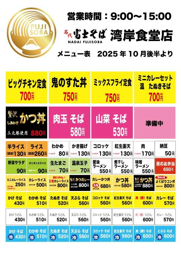 湾岸食堂店 メニュー紹介 更新:令和7年10月24日(金)