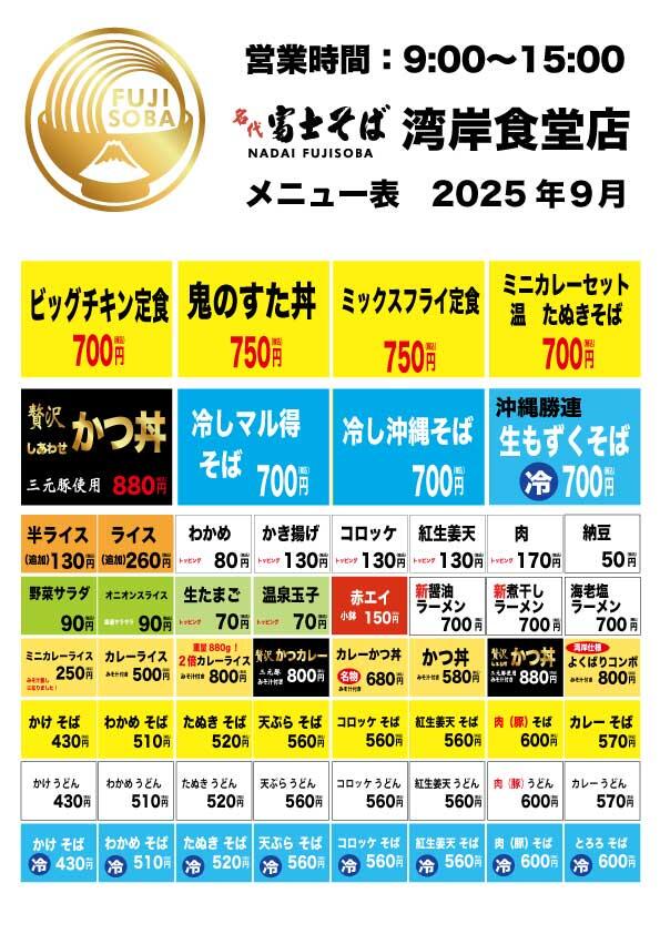 湾岸食堂店 メニュー紹介 更新:令和7年9月9日(火)