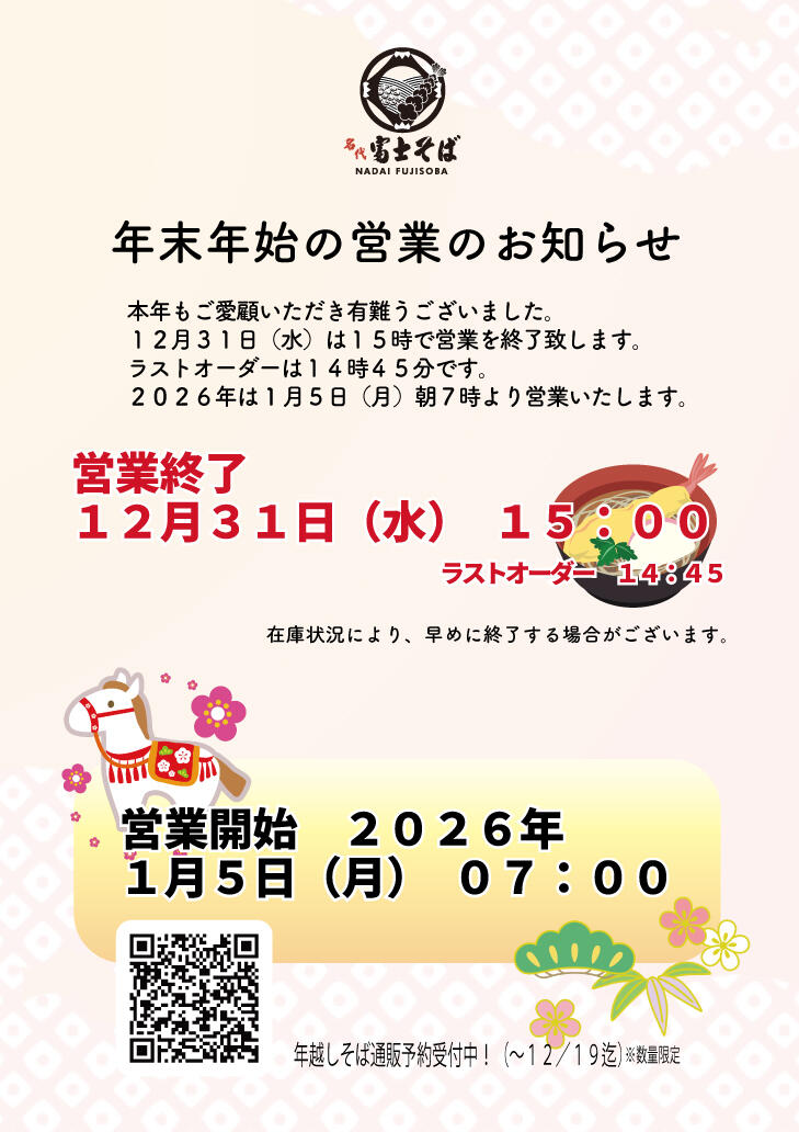 なお、誠に勝手ながら、2026年1月1日(木)~1月4日(日)は休業とさせて頂きます。